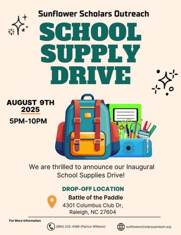 Join Sunflower Scholars Outreach on Saturday, December 6, 2025, from 9 AM – 3 PM at Cleveland High School in Clayton, NC!